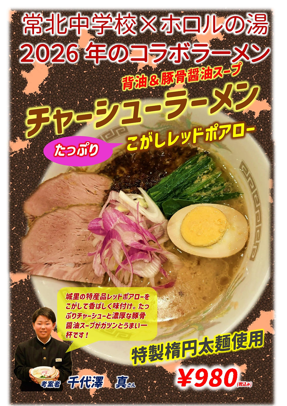 2026/2/21発売!! 常北中学校×ホロルの湯『城里町特産品使用!中学生考案のオリジナルラーメン!』